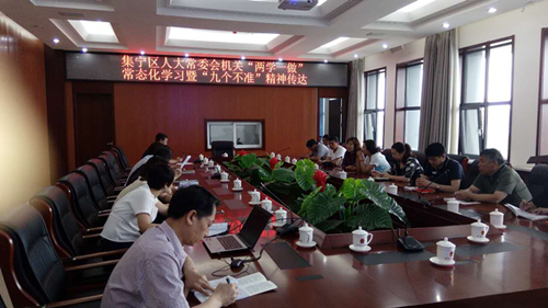 6月21日,集宁区人大常委会机关根据“两学一做”常态化、制度化要求,在机关开展集中学习,并传达了区委近期下发的“九个不准”专题方案。